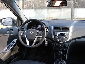 Приборная панель автомобиля Hyundai Solaris оснащена тахометром, спидометром, датчиками контроля состояния. Благодаря своей бело-синей подсветке, водитель может легко считывать все необходимые данные в любых условиях. Кроме того, вся актуальная информация не только отображается на дисплее, но и дублируется звуковыми сигналами.
